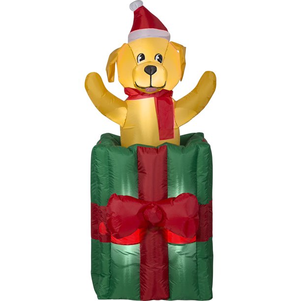 Gemmy Christmas Airblown Animated Pop Up Dog Gift Box Yard Inflatable 59 84 Walmart Com